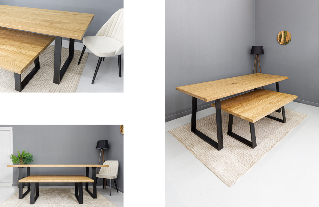Нашиот прв модел во 2023 е Феникс трпезариска и клуб маса Може да се изработи од бука, даб или орев. Визуелно ќе ја препознаете по специфичниот спој на самиот агол од плотната со заоблување кое е рачна изработка и ногарки од дрво изработени на цнц торно машина со највисок степен на технологии и прецизоност. Може да биде во полна боја (црна бела антрацид), но доколку се одбере даб или бука како материјал може и да се нијансира (бајцува) по желба. Имате можност да одберете мат, полусјајна или сјајна варијанта.