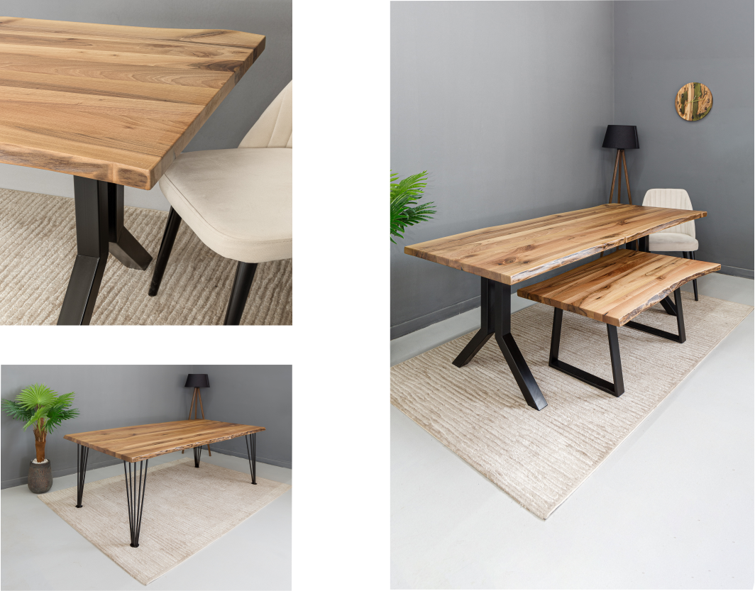 Нашиот прв модел во 2023 е Феникс трпезариска и клуб маса Може да се изработи од бука, даб или орев. Визуелно ќе ја препознаете по специфичниот спој на самиот агол од плотната со заоблување кое е рачна изработка и ногарки од дрво изработени на цнц торно машина со највисок степен на технологии и прецизоност. Може да биде во полна боја (црна бела антрацид), но доколку се одбере даб или бука како материјал може и да се нијансира (бајцува) по желба. Имате можност да одберете мат, полусјајна или сјајна варијанта.